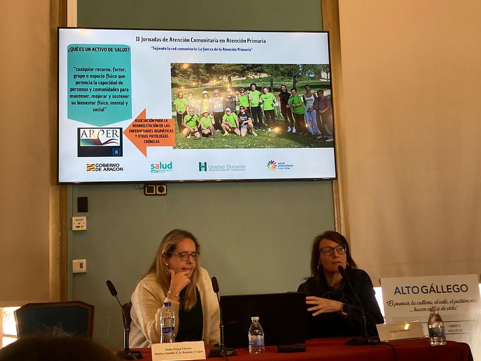 Gracias, Elena, por tu profesionalidad, tu compromiso y por ser una pieza fundamental de este modelo. Y gracias también a Laura Rivilla, del Centro de Salud de Sabiñánigo, presente igualmente en estas Jornadas con su experiencia comunitaria, por seguir siendo parte de esta red que seguimos tejiendo.